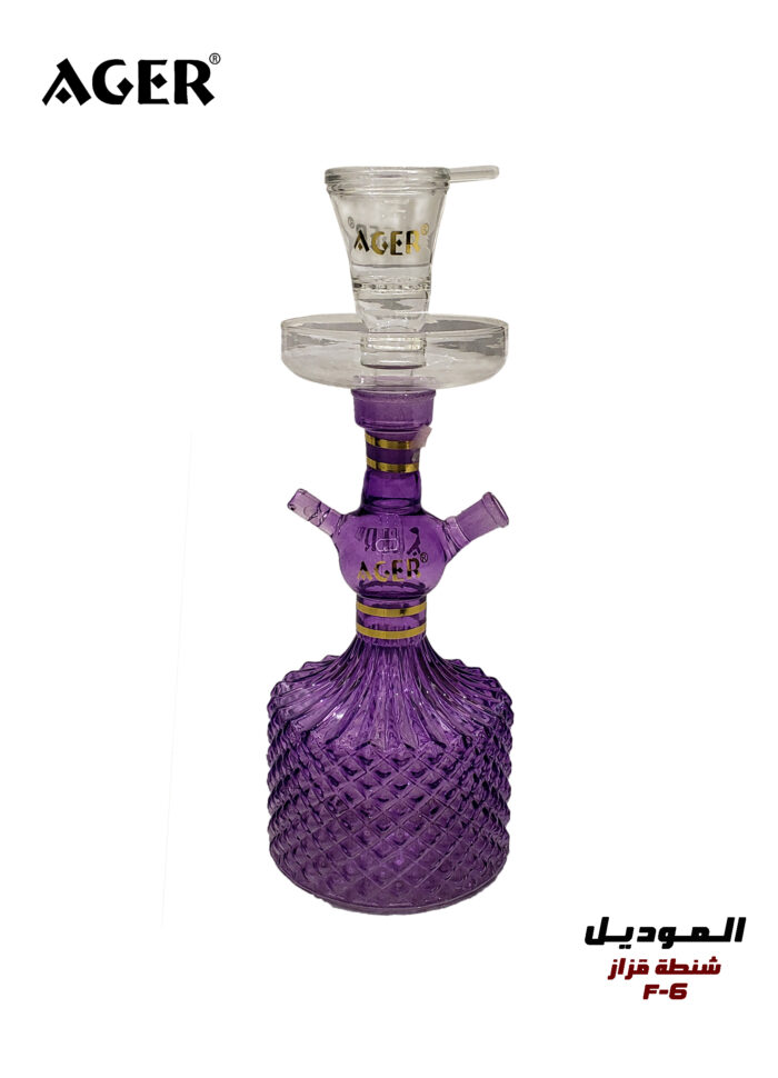 The AGER F-6 Hookah combines elegant design with premium performance. Featuring a textured glass base in a vibrant purple hue and a durable, easy-to-clean body, it delivers a smooth smoking experience. Ideal for stylish gatherings or personal use, it stands out with its refined aesthetic.